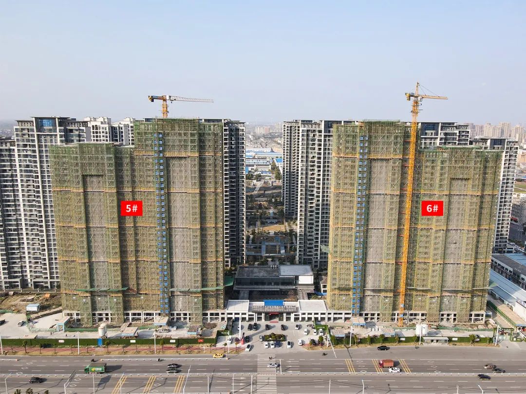 5#、6#楼外立面、门窗护栏等均已完工,内部完善中