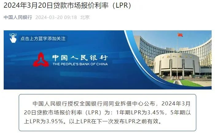 继上个月5年期贷款市场报价利率(LPR)官宣下调之后,今日三月份LPR公布,维持上期报价不变,即1年期LPR为3.45%,5年期以上LPR为3.95%。以上LPR在下一次发布LPR之前有效。