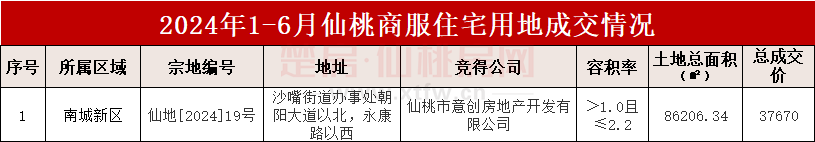 2024上半年仙桃成交19宗土地,成交金额4.76亿。