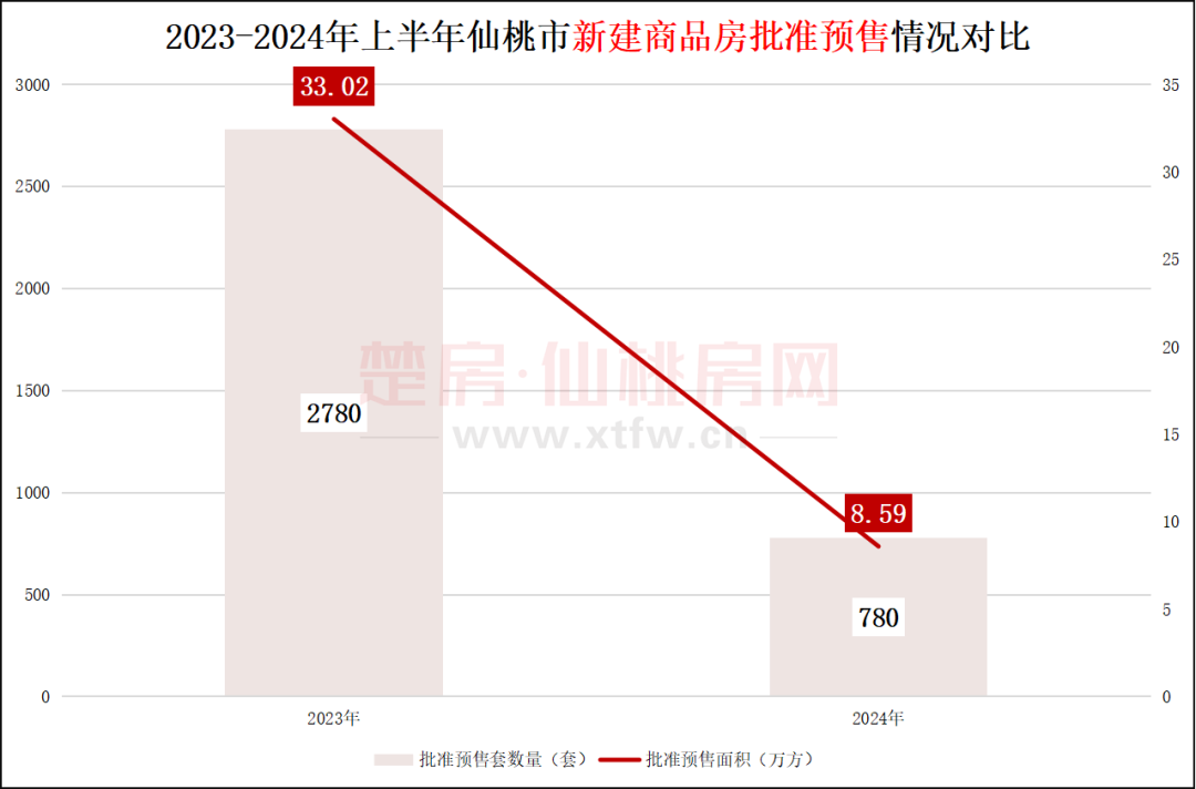 2024年上半年,仙桃市新建商品住房批准预售733套,批准预售面积8.24万方,同比减少73.4%。