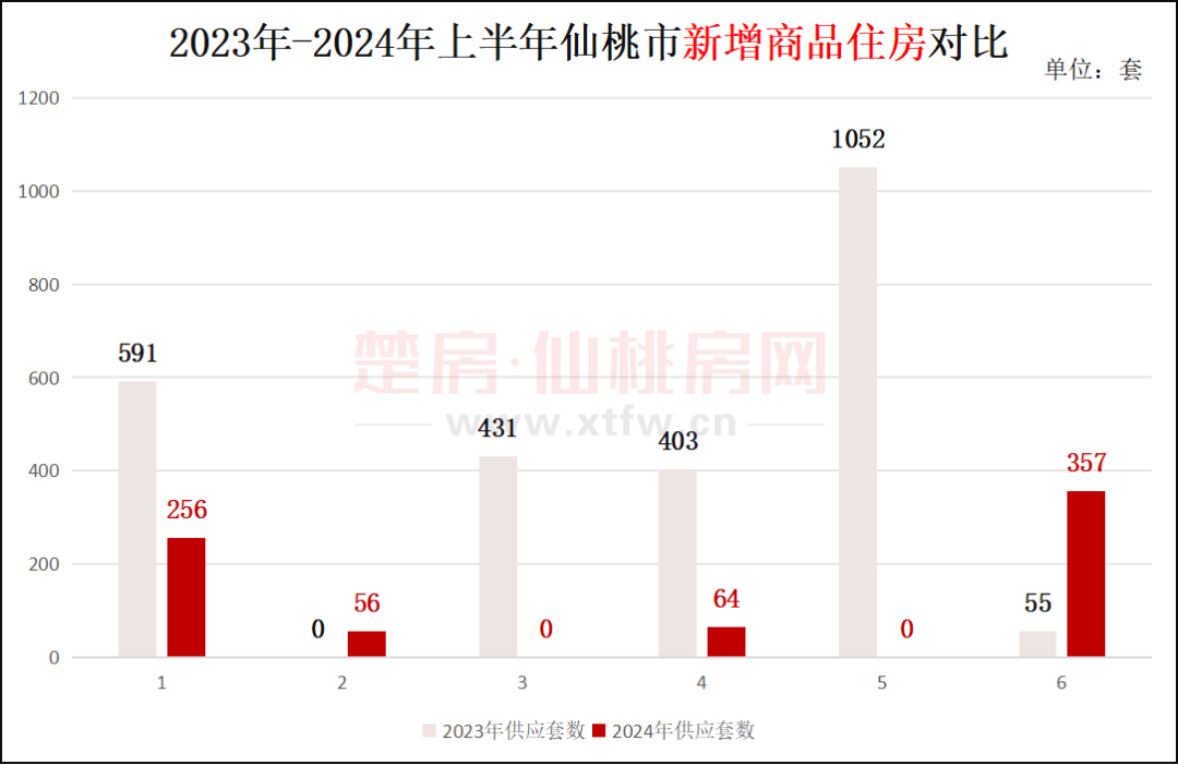 *2023-2024年上半年仙桃市新增商品房情况对比