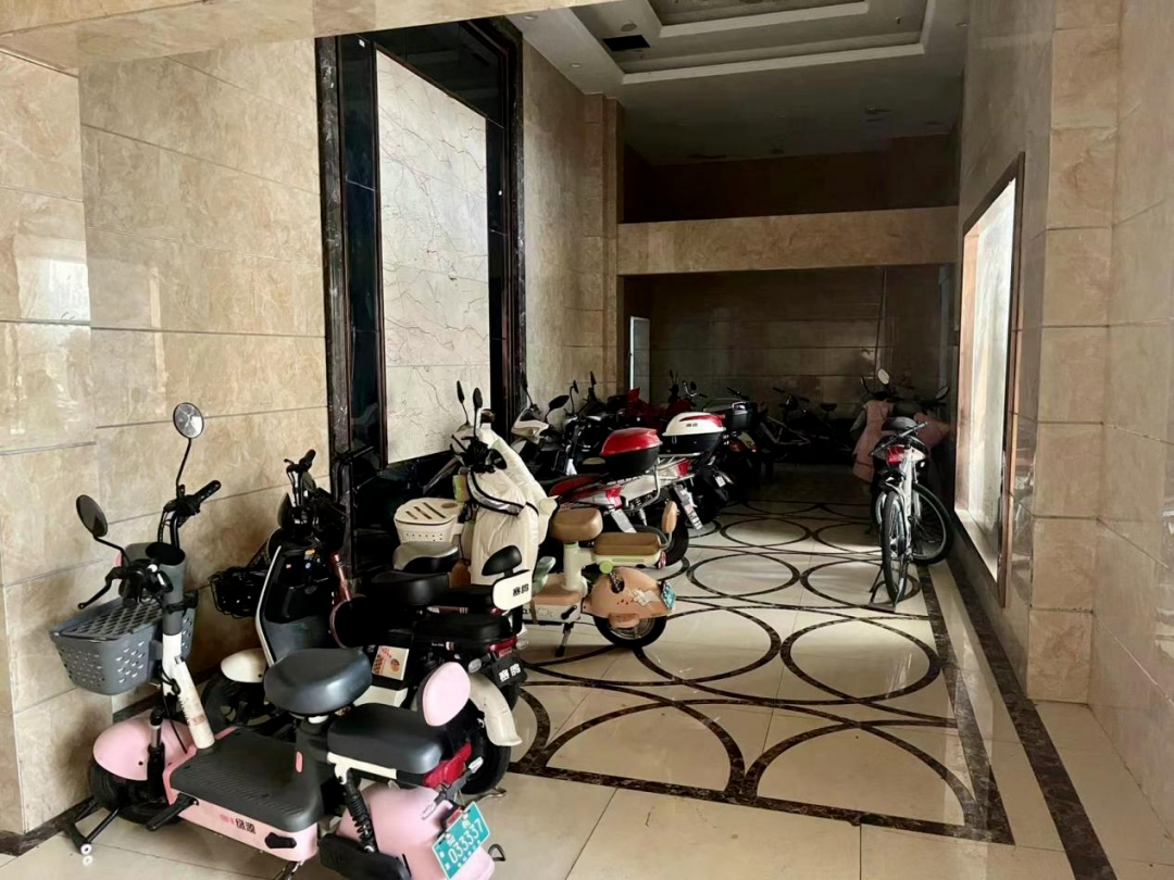 小区楼道杂物未及时清理,电动车停放在入户大厅,业主反映问题整改效率不高。