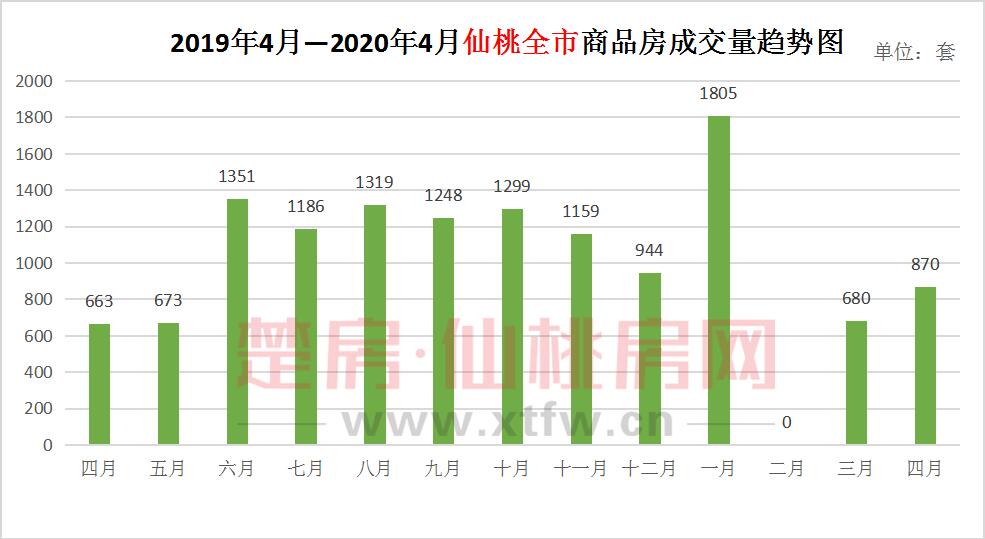 2019年4月—2020年4月仙桃全市商品房成交量趋势图