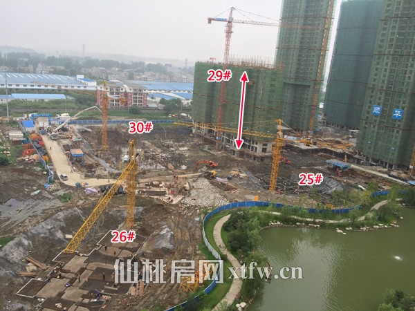 29#楼主体结构至15层;30#楼正在进行基础结构施工;25#楼基础施工;26#楼基础结构施工。